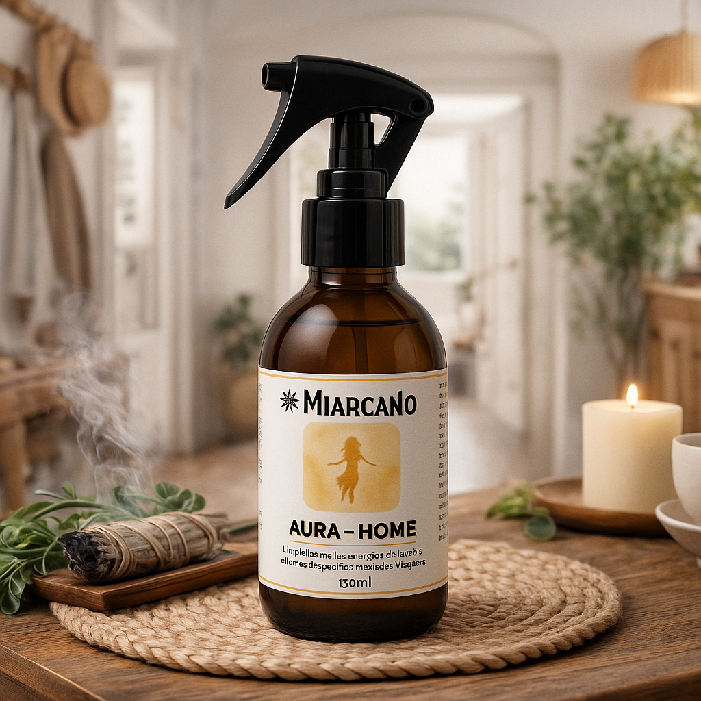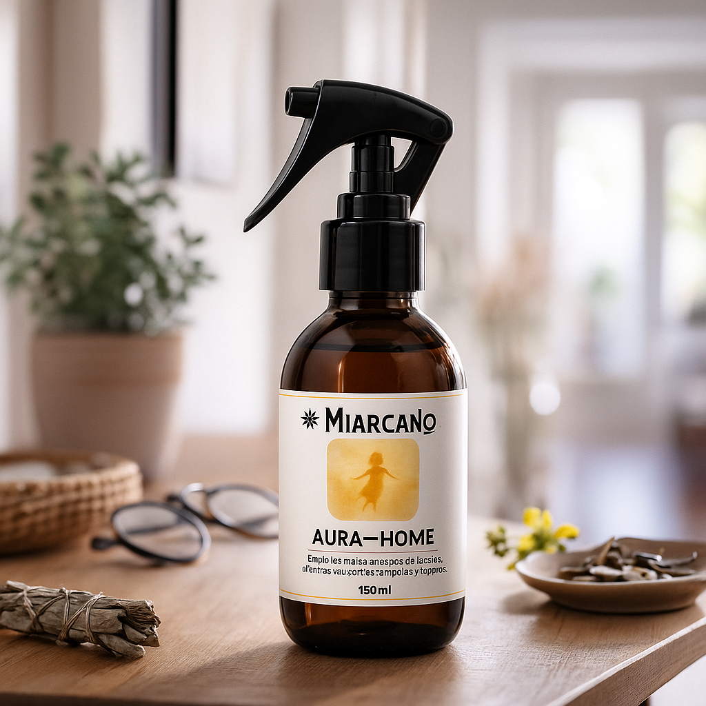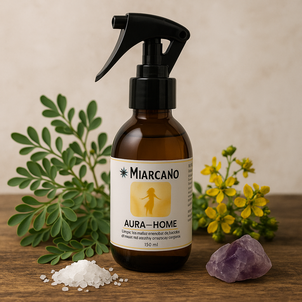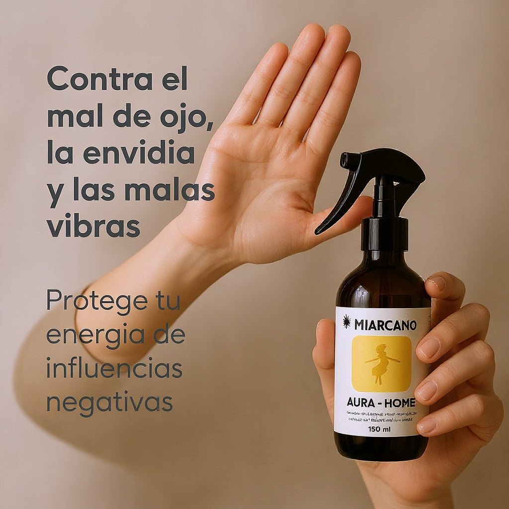 Inspirado en antiguas fórmulas de limpieza energética, Aura-Home es un spray natural elaborado con hierbas y resinas sagradas que limpian profundamente las energías densas y protegen tu entorno de malas intenciones, envidia y mal de ojo.